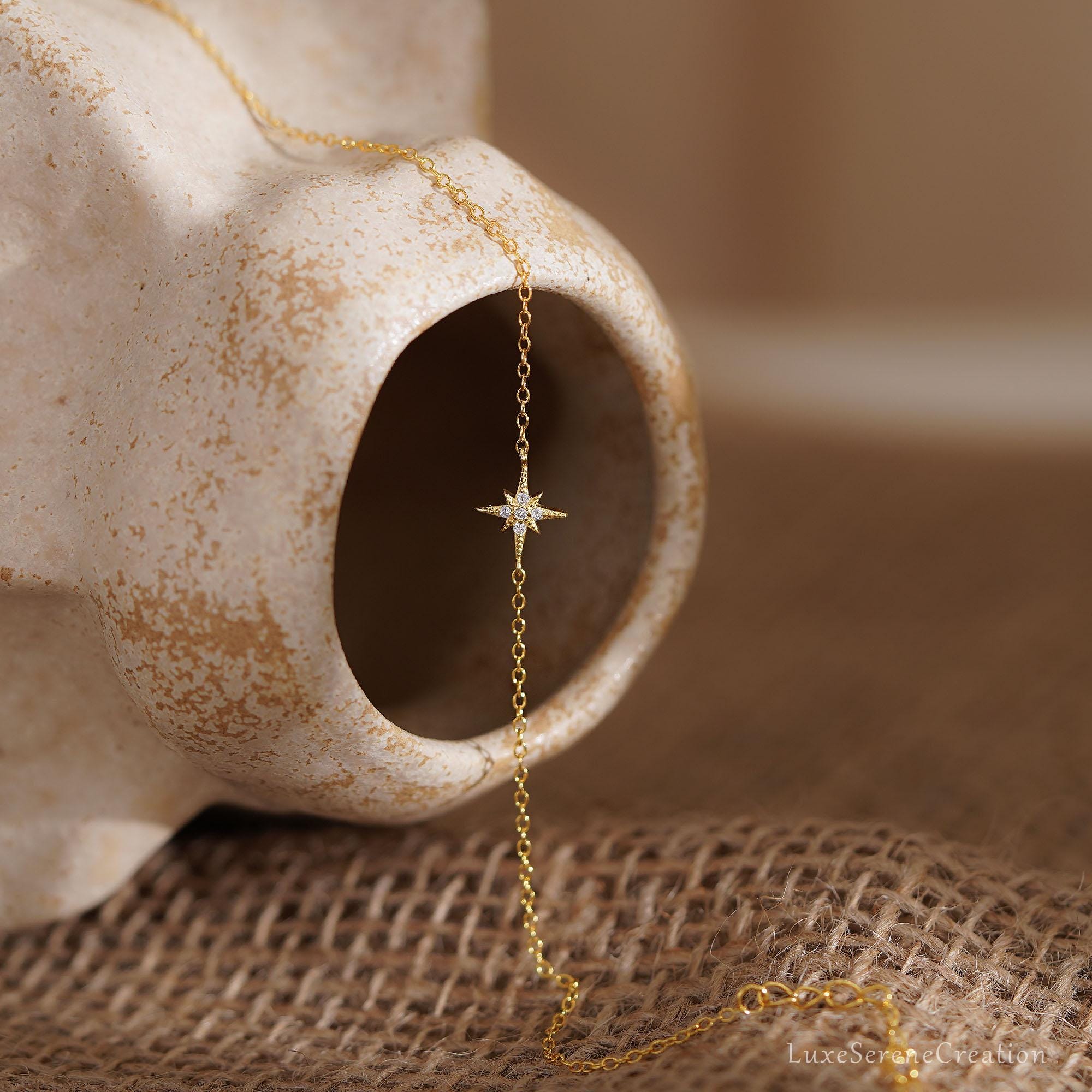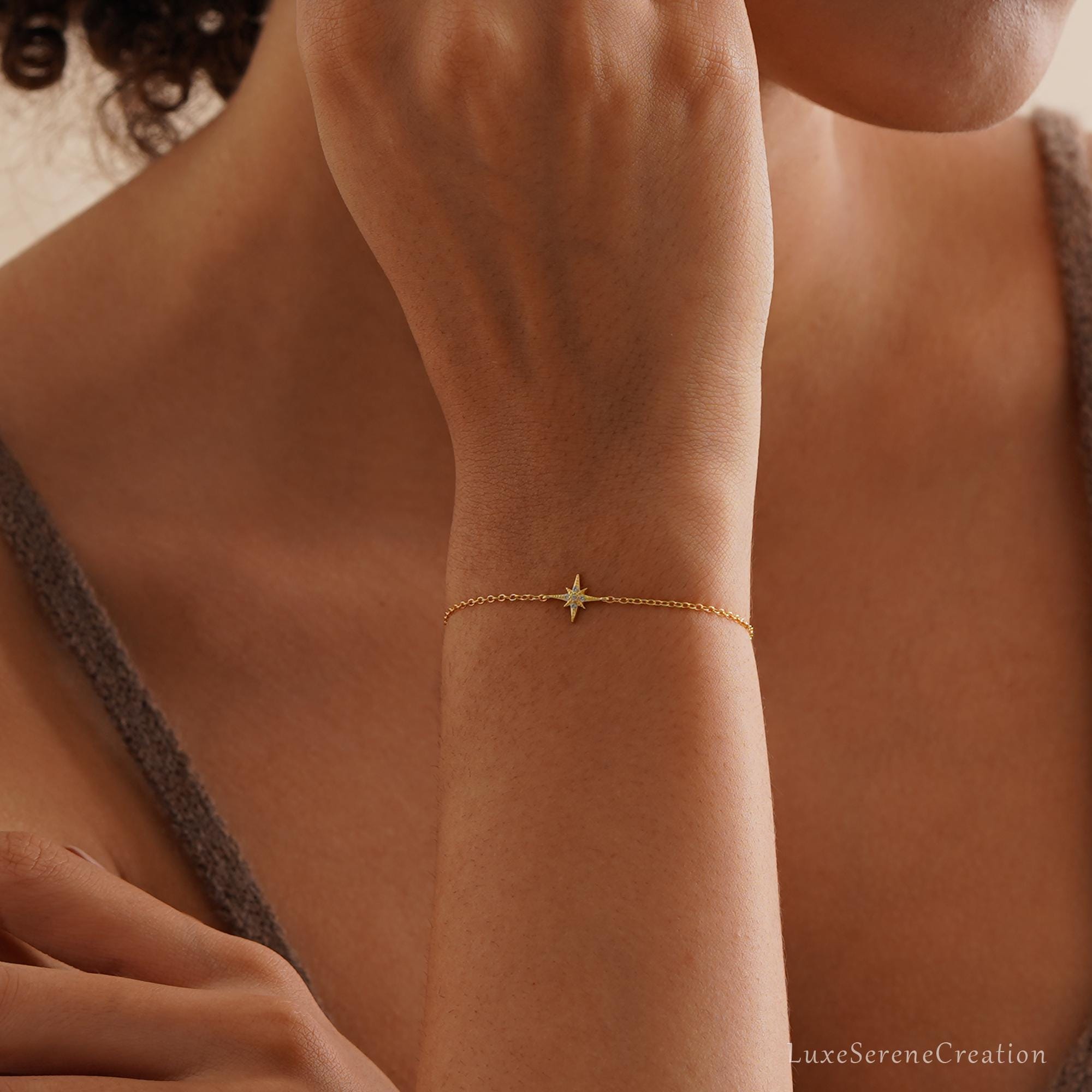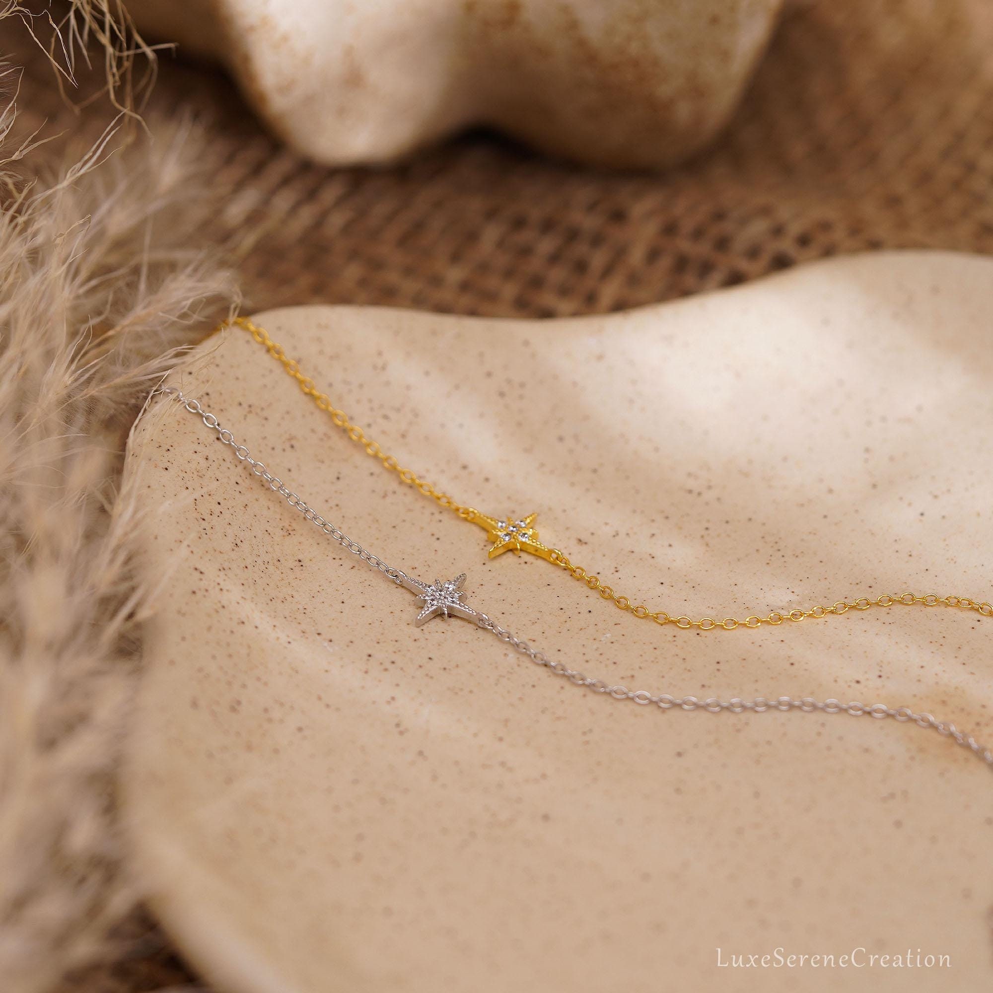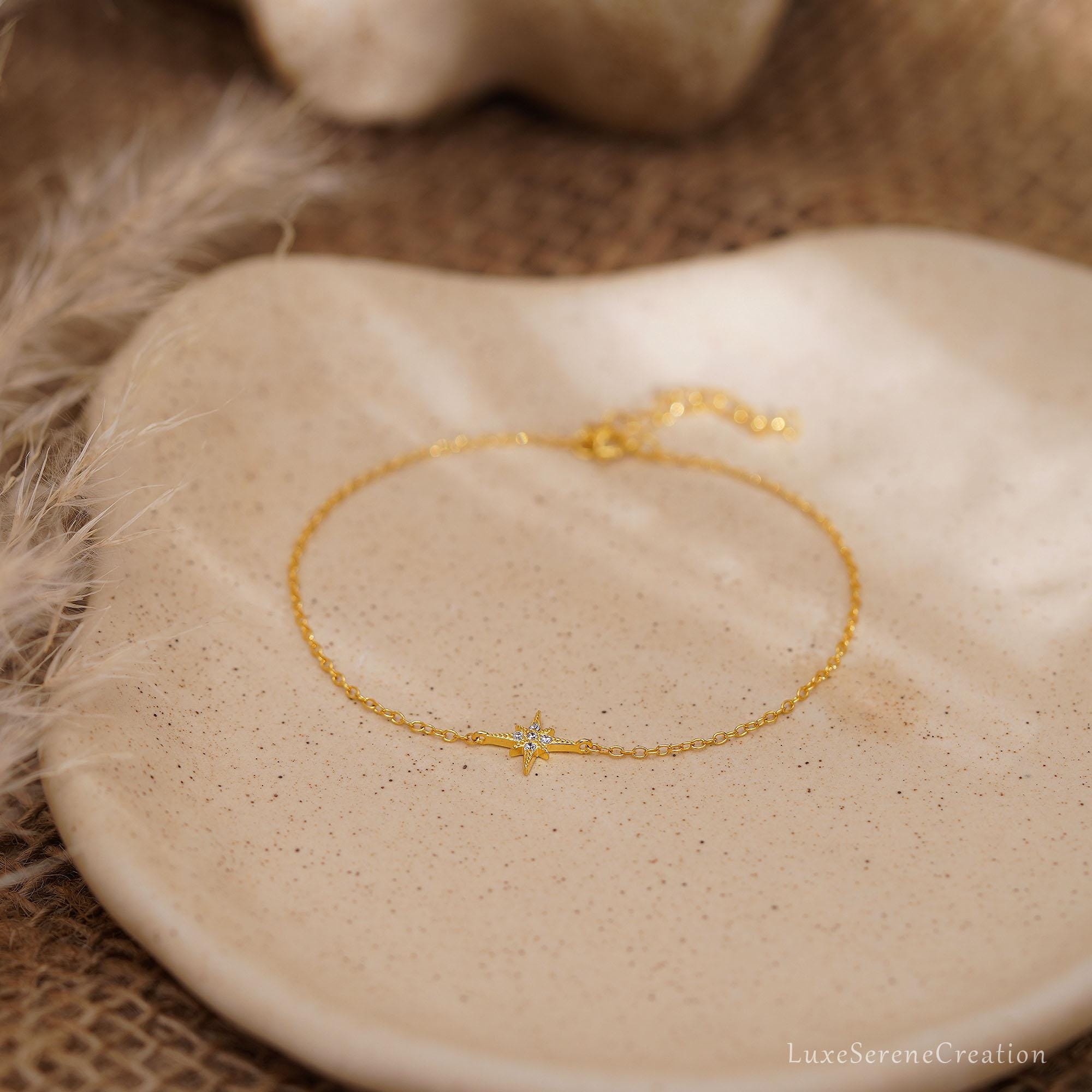 925 Sterling Silver Octagonal Star Bracelet with Diamonds, Delicate Star Bracelet for Mom, Gold Bracelet, Best Friend Gift, Mother’s Day Gift