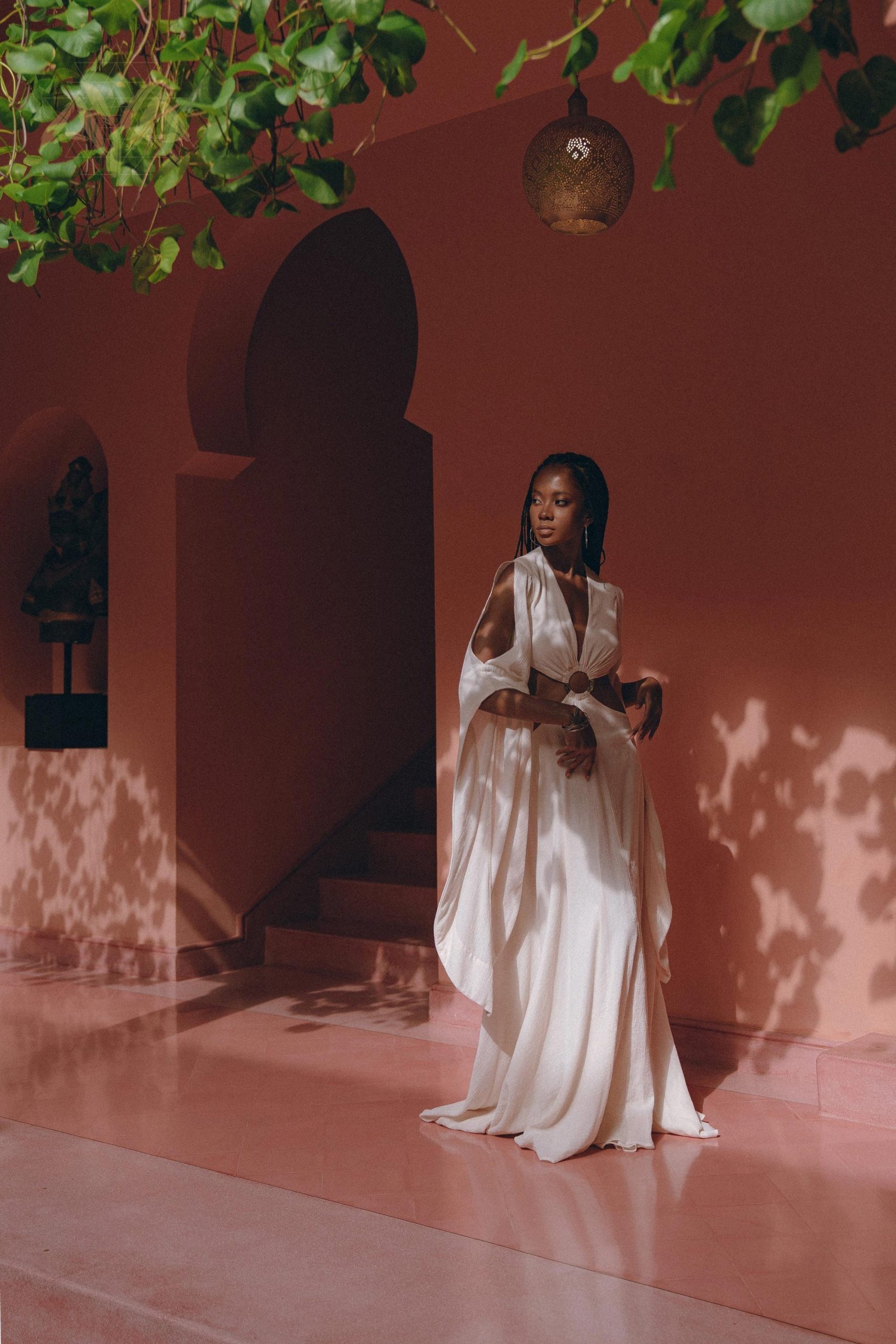 The central ring on the dress symbolises the essence of the feminine, the genesis of new beginnings.